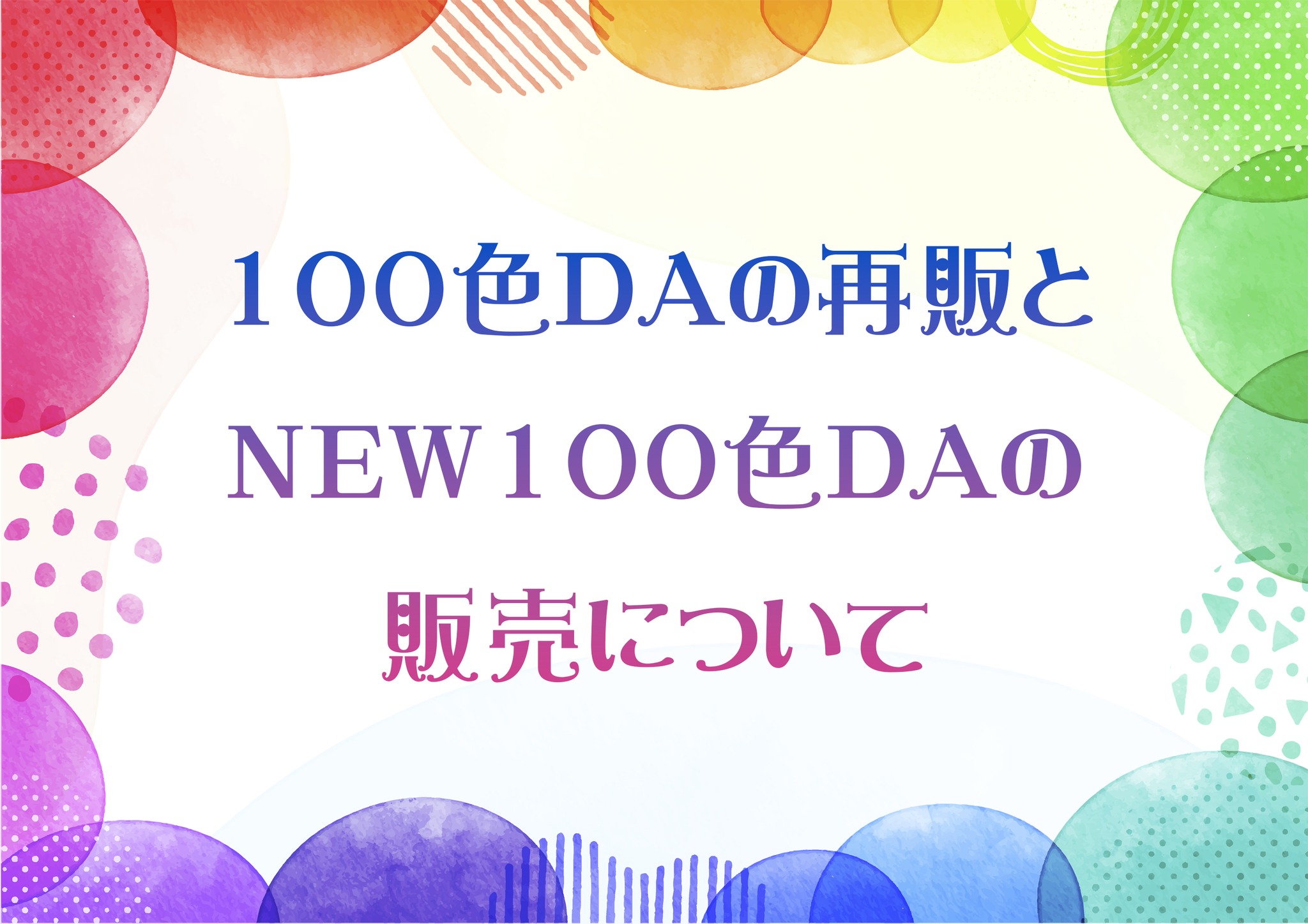 3つの100色DAの再販と、3つの新しい絵柄の100色DAの販売を開始します✨